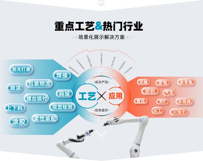 东莞国际工业自动化及机器人展将焊接、喷涂、码垛、搬运、检测等自动化生产环节所需的重点工艺与汽车、3C电子、家电、潮玩零售等华南地区热门行业相结合,场景化展示各大解决方案。